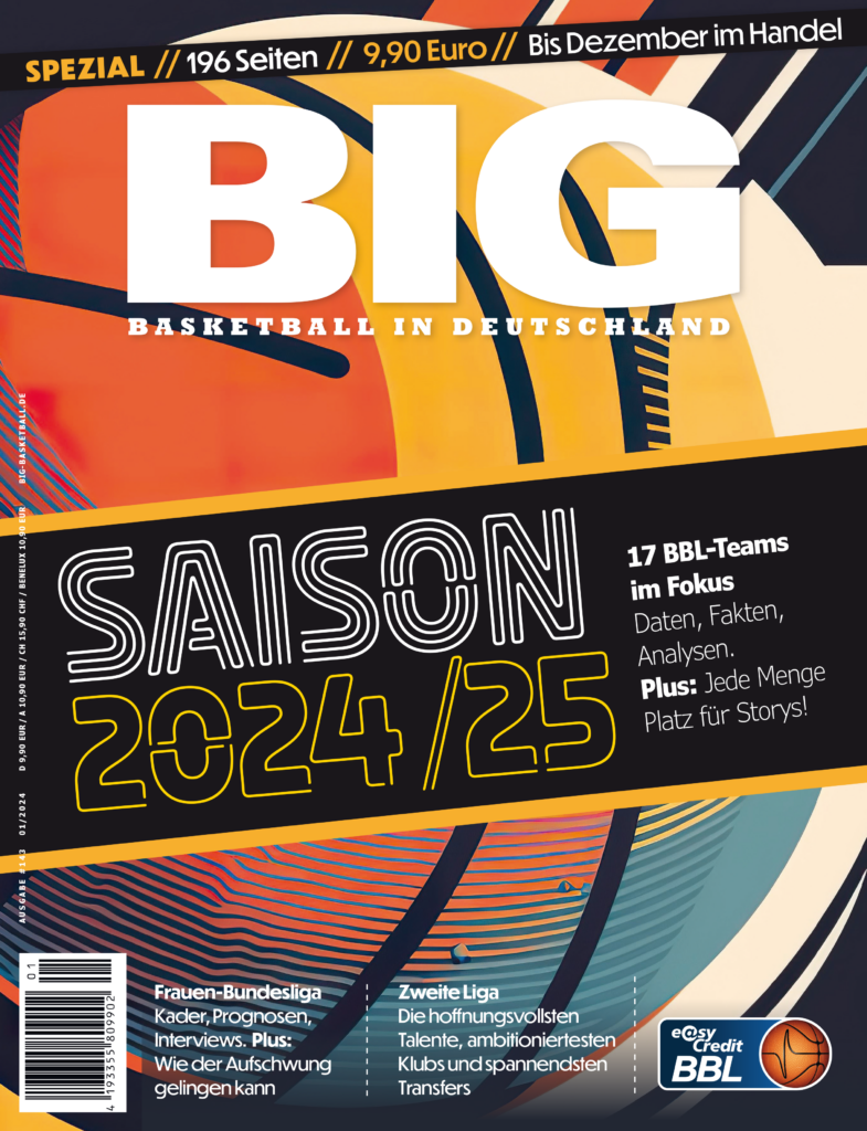 Was treibt Basketball-Deutschland um? Nachzulesen in der BIG #144. Ab 22. Oktober im Handel – oder jetzt online bestellen, wie gewohnt auf 100 Seiten. Das Magazin beschäftigt sich intensiv mit den Basketball Löwen Braunschweig. Die Niedersachsen setzen unter der Leitung von Weltmeister-Kapitän Dennis Schröder seit vier Jahren konsequent auf die Entwicklung junger deutscher Spieler. BIG erklärt, was dahintersteckt, warum