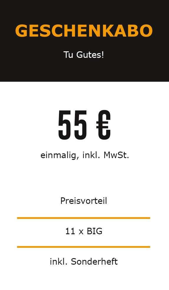 Geschenk Abonnement zum Vorzugspreis von 55€ (statt 68,90 Euro im Einzelkauf) für 10 Ausgaben und ein Sonderheft (Doppelausgabe) im Jahr. Die Abrechnung erfolgt jährlich. (Auslandskonditionen auf Anfrage). Der Versand des Magazins ist kostenlos.